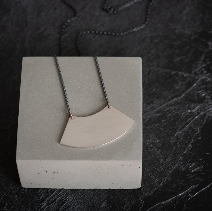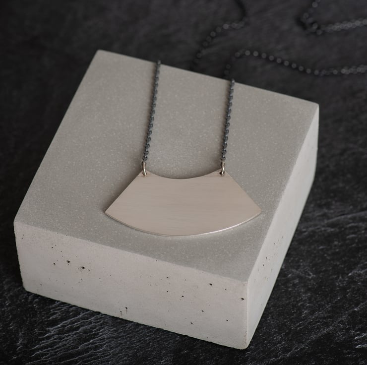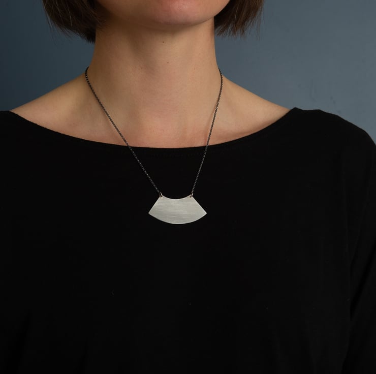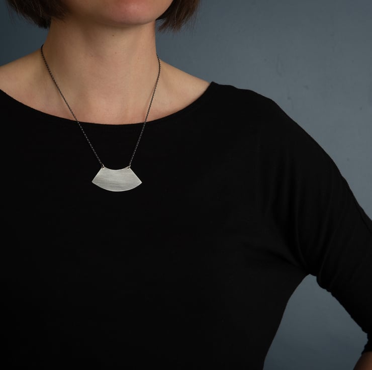 I have used the traditional method of saw piercing to cut out the curved pendant shape. I've given the pendant a modern, brushed polish finish.