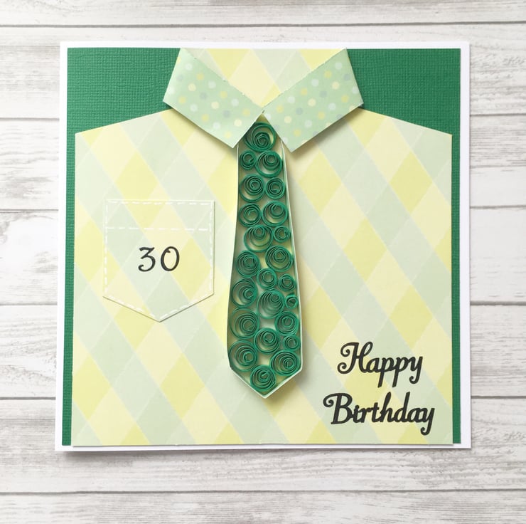 Men’s birthday card - quilled tie and shirt