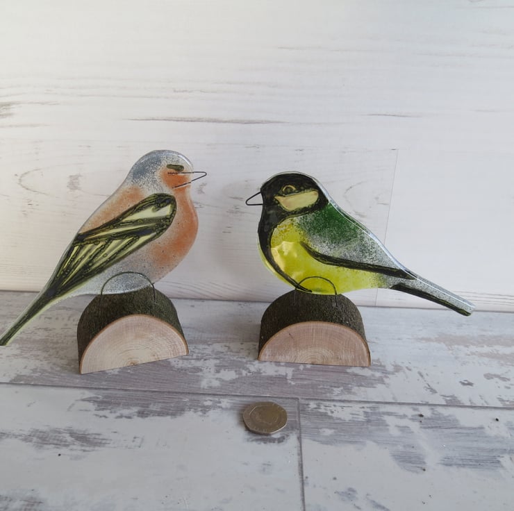 Each of my birds is made from two pieces of thin glass. To this I add powders to give the characteristic colours. His beak and legs are made of wire which is inserted between the glass before the bird is fired in the kiln.