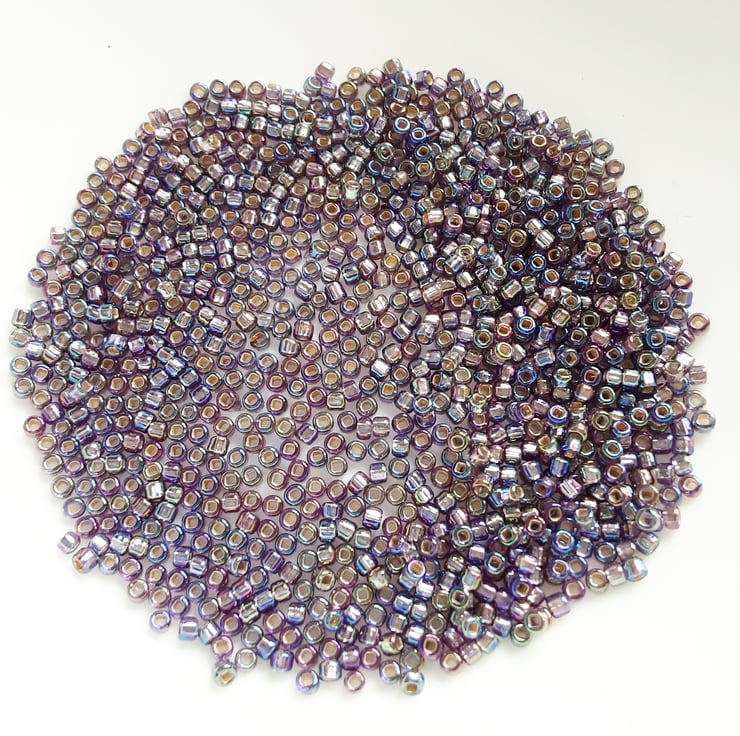 Grey, purple, blue multicoloured seed beads (Rocaille beads)