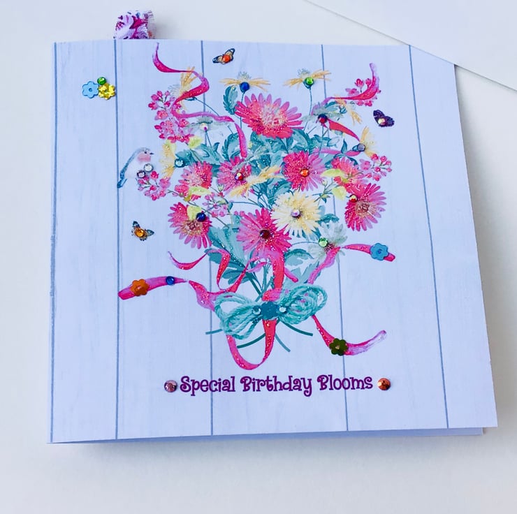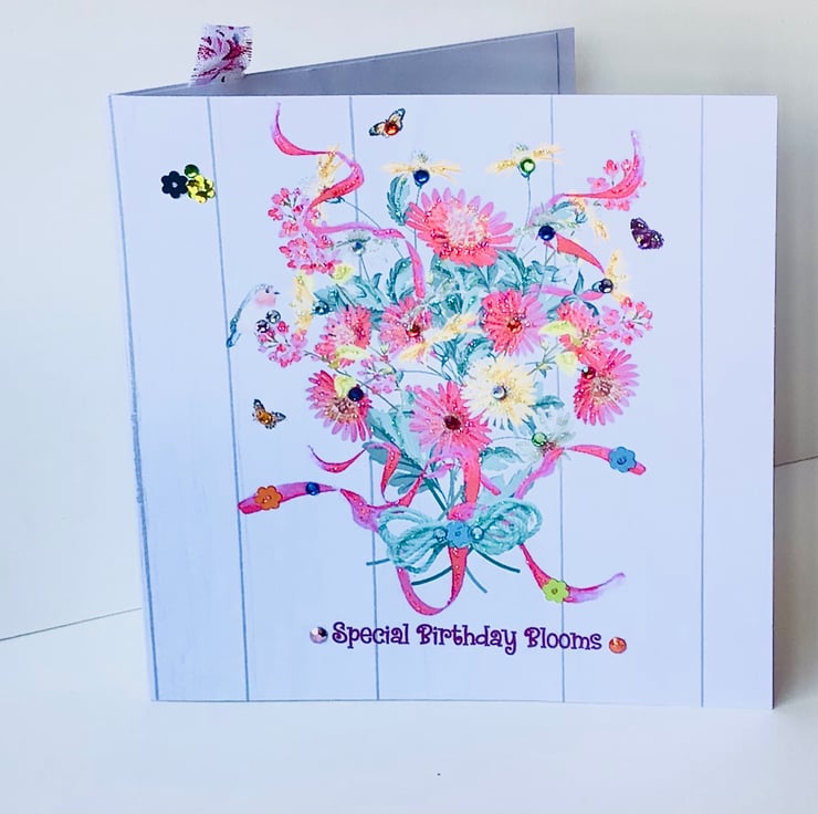 The greeting on the front is ‘Special Birthday Blooms’