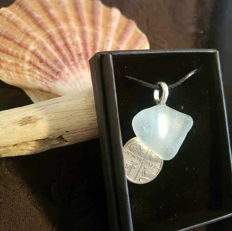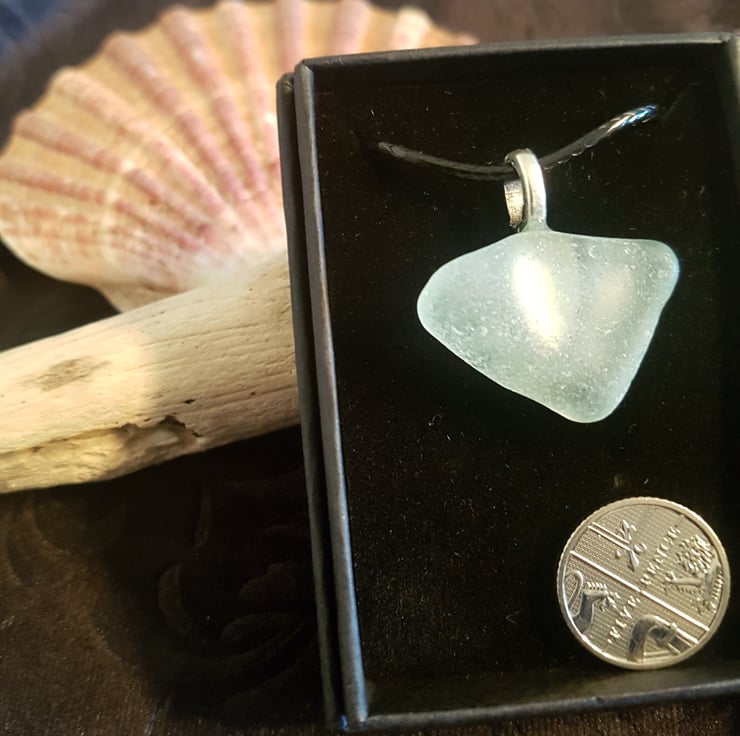An unusual piece of seaglass also known as seafoam this one has an aqua tinge. Beautifully contoured by the crashing waves over years of motion.