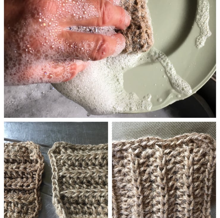 The jute scrubbies are crocheted in 3 sizes: the thinnest size is best for washing up, as it gets inside mugs easily. The thickest size is best for cleaning and the middle size can be used for either task. The crochet corrugated effect allows for efficient cleaning.