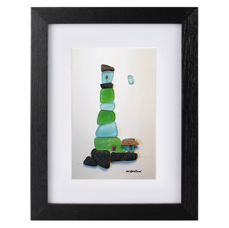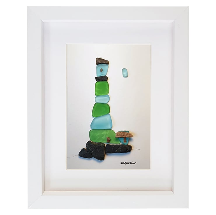 Blue & Green Lighthouse is a unique sea glass and pebble creation by me, Sophie Kirkpatrick.
