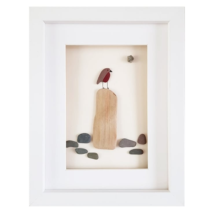 Robin on a Post is a unique sea glass and pebble creation by me, Sophie Kirkpatrick.