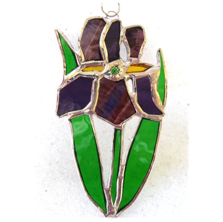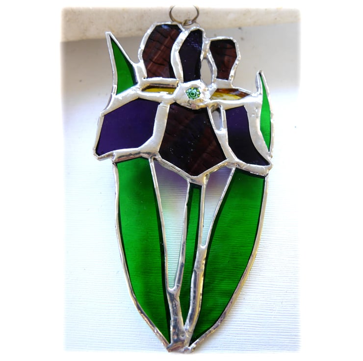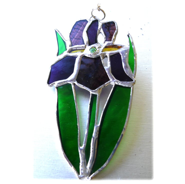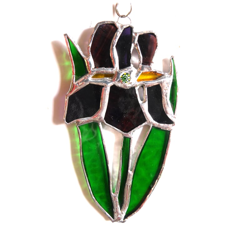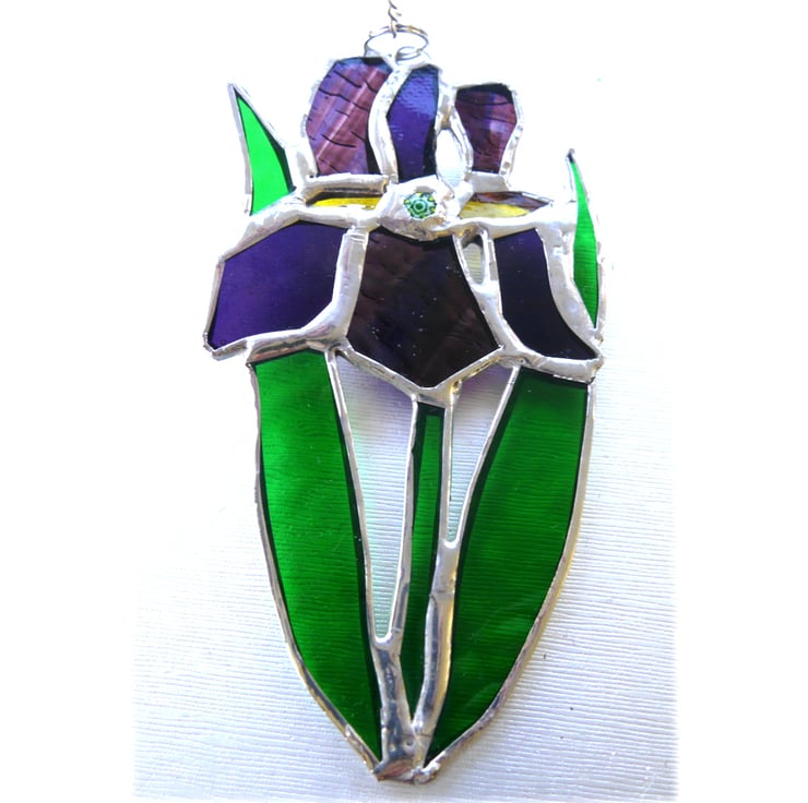 The suncatcher hangs from a chain which is securely attached to the top of the iris which is 13 cm high and 8cm wide.