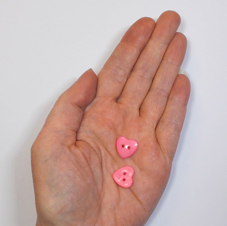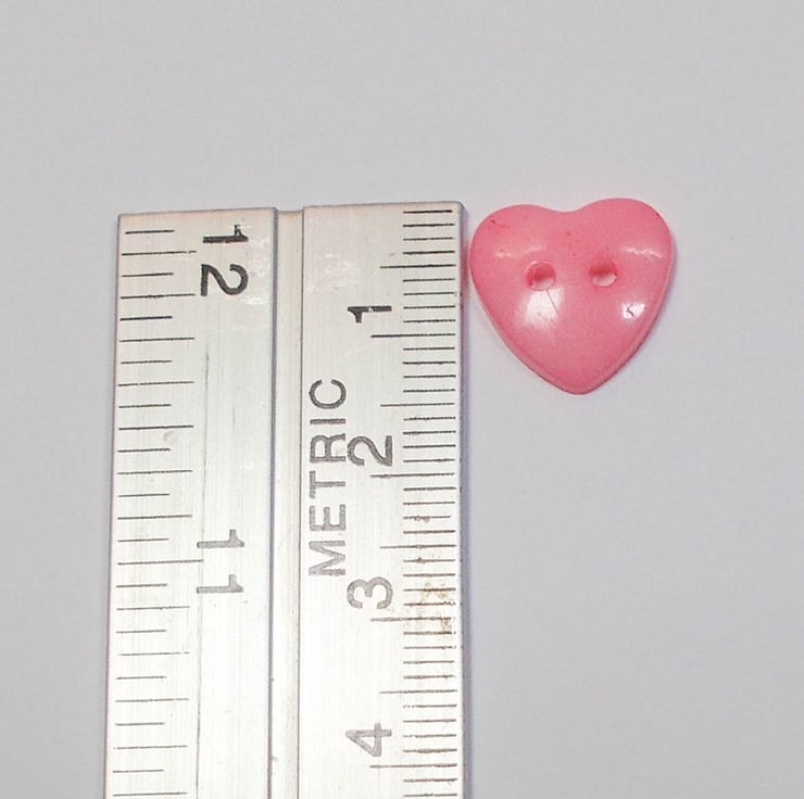 These pretty acrylic heart buttons measure 15mm (length) by 14mm (width).