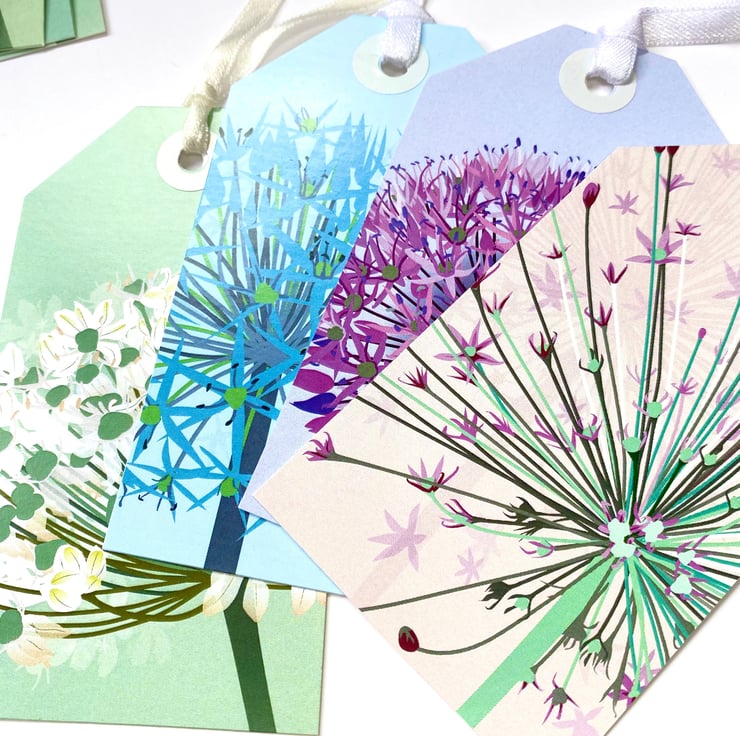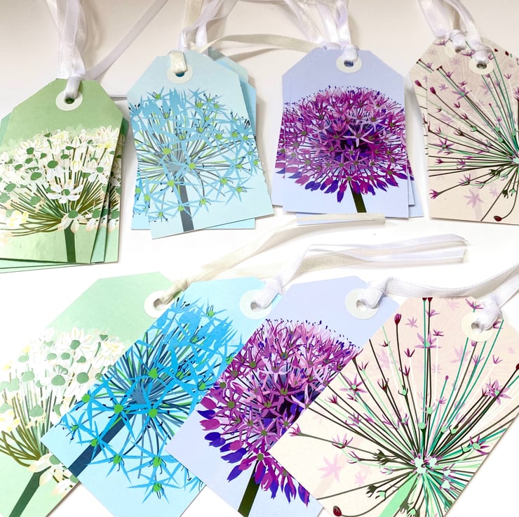 You will receive 5 tags each of these 4 Allium designs: White Allium, Winter Allium, Purple Allium and Giant Allium.