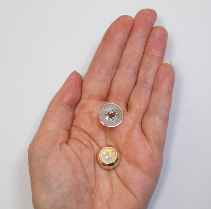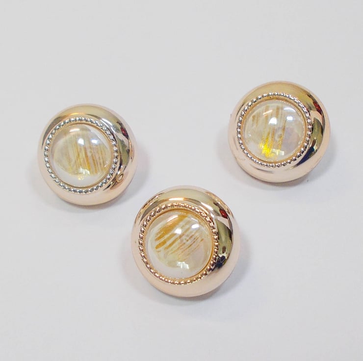 They are circular in shape and have a pretty faux glass stripy stone in the centre.