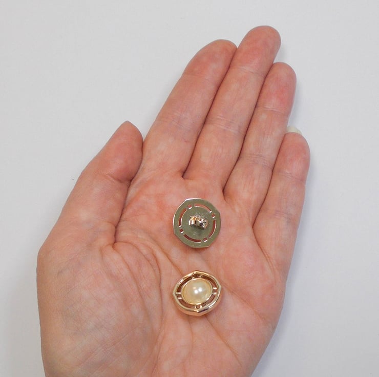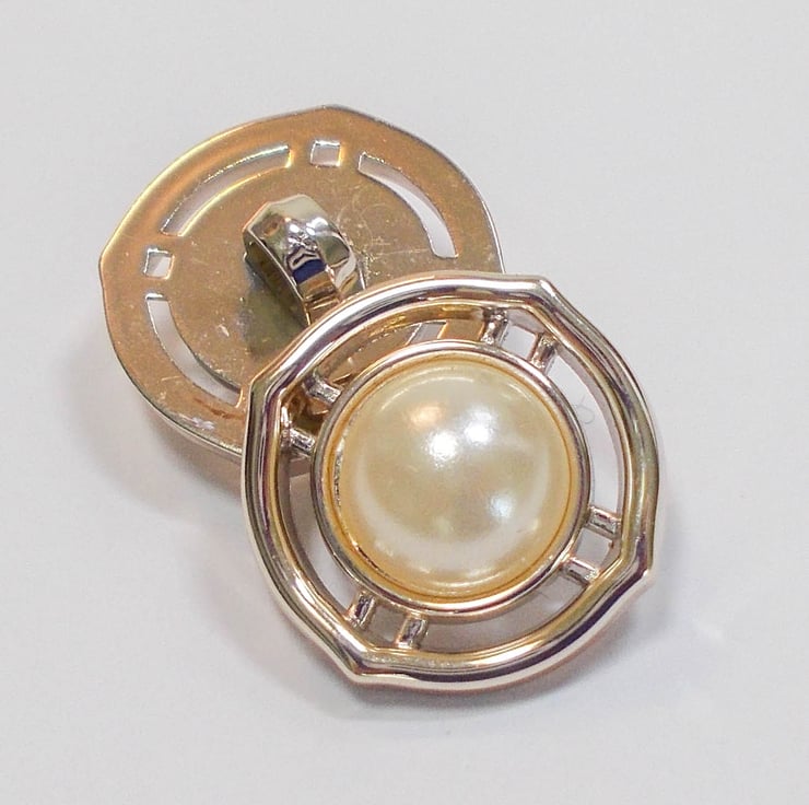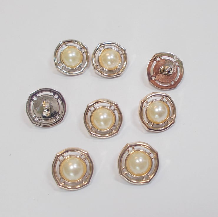 Pack of 8 gold faux metal shank button with faux pearl stone.