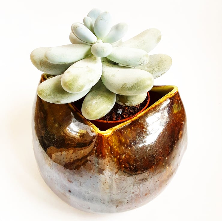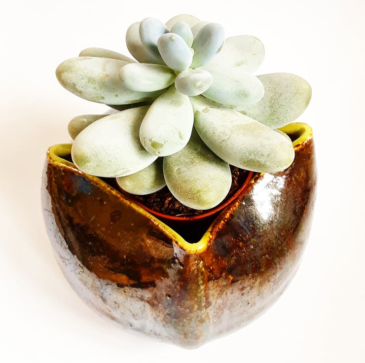 This is a handmade wheel thrown Ceramic Plant Pot Holder