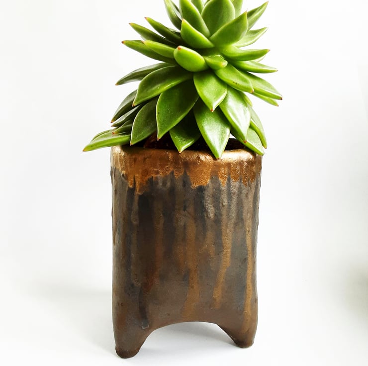 This is a handmade wheel thrown Ceramic Plant Pot Holder