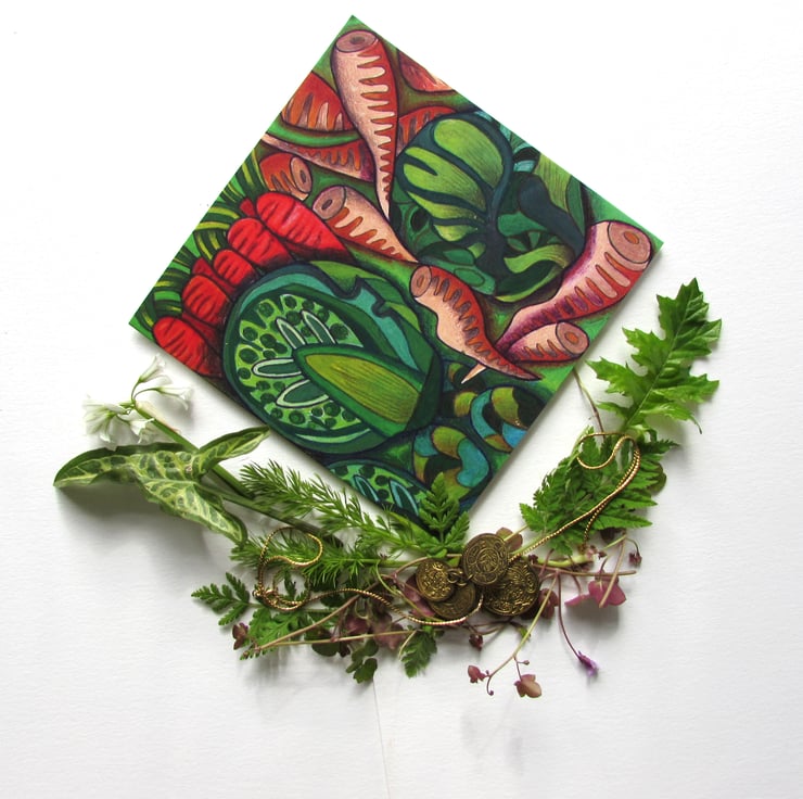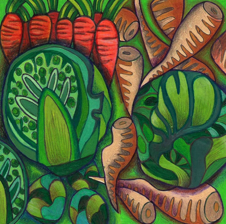 Sprout Loving... for all those lovers of green veg. Actually it was inspired by Christmas vegetables... weird I know but I love the inside of sprouts... amazing world in miniature (but I'm one of those people who do not enjoy eating them!), the colour of carrots and parsnips grow in some very strange shapes! Enjoy!