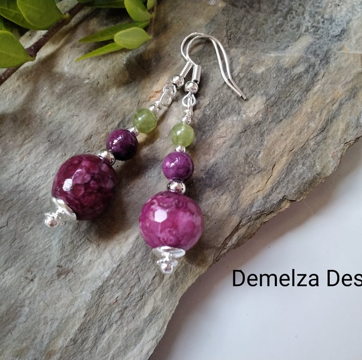 Colour Treated Agate, Quartzite & Peridot Silver Plated Earrings