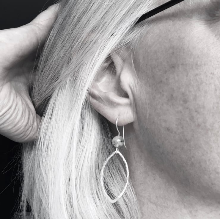 The earrings are long with a lovely movement, catching the light beautifully on the textured areas. Perfect for dressing up and outfit and comfortable enough to wear all day.