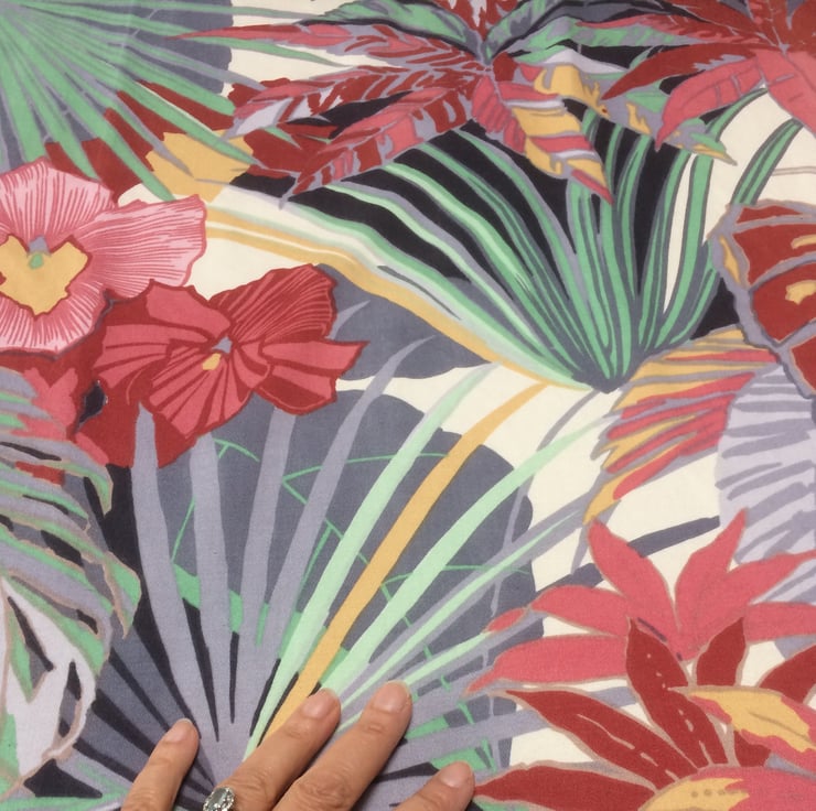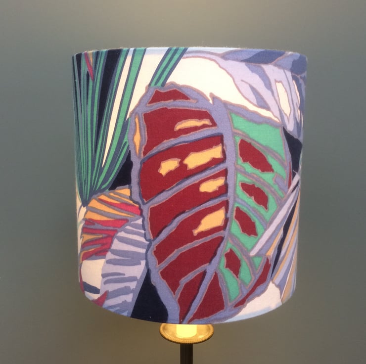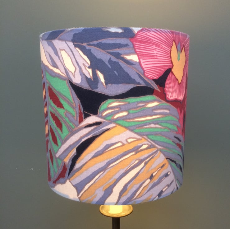 Tropical Leafy Jungle West Coast Deco Hawaii Tiki 80s Vintage Fabric Lampshade