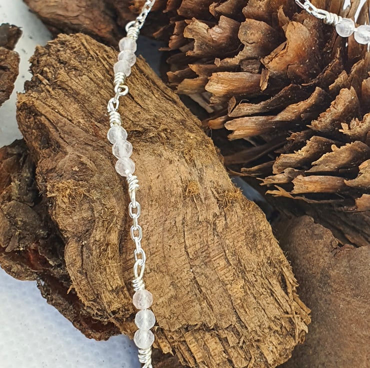 Although in the UK we don't get a lot of sun I wanted to make something for days on the beach! These rose quartz crystals are very pale pink so the anklet goes with everything. I wear mine every day in the hope of some sunshine! :-)