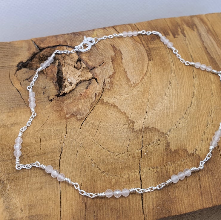 Rose quartz silver anklet - perfect for the beach! Very pale pink pretty rose quartz beads on a sterling silver chain. The beads are AAA grade rose quartz micro-faceted rondelle beads from Brazil.