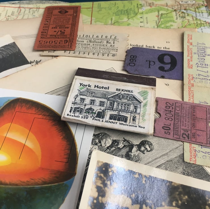 Each of the ephemera packs I create includes some or all of the above, and anything I find curious and interesting picked from the collection (housed in a selection of capacious tubs, envelopes and groaning shelves in my workroom). So it's as much as surprise to me as to you!