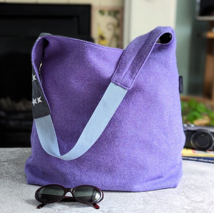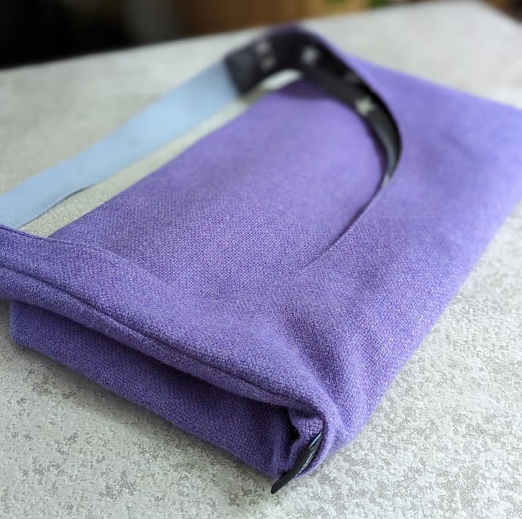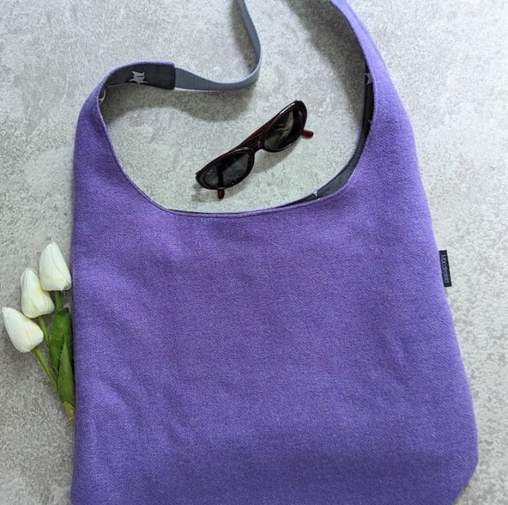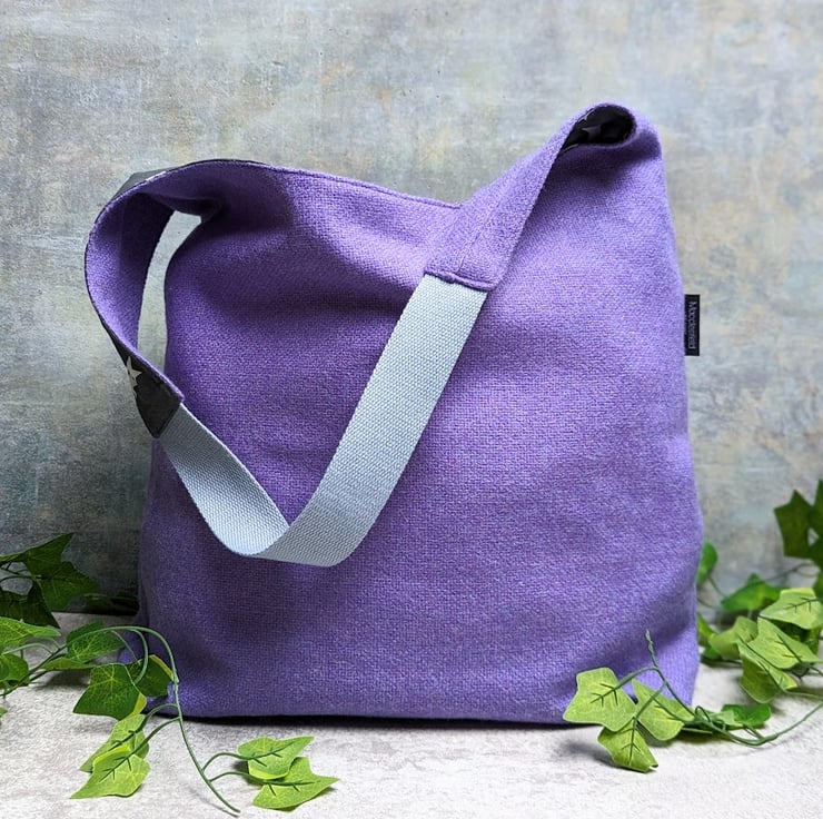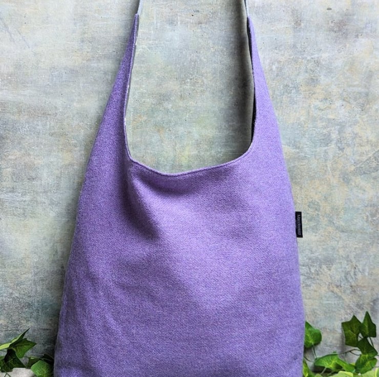 Handmade using a lavender purple woven wool fabric, this slouchy shoulder bag is perfect for a day out to the shops and weighing in at only 230g, its just right for packing in a suitcase for travelling.