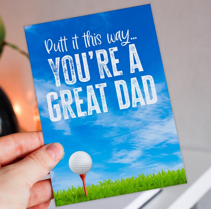 Golfer, golfing, golf Father's Day card for dad, daddy, father: Putt it this way, you're a great dad (Size A6/A5/A4/Square 6x6")