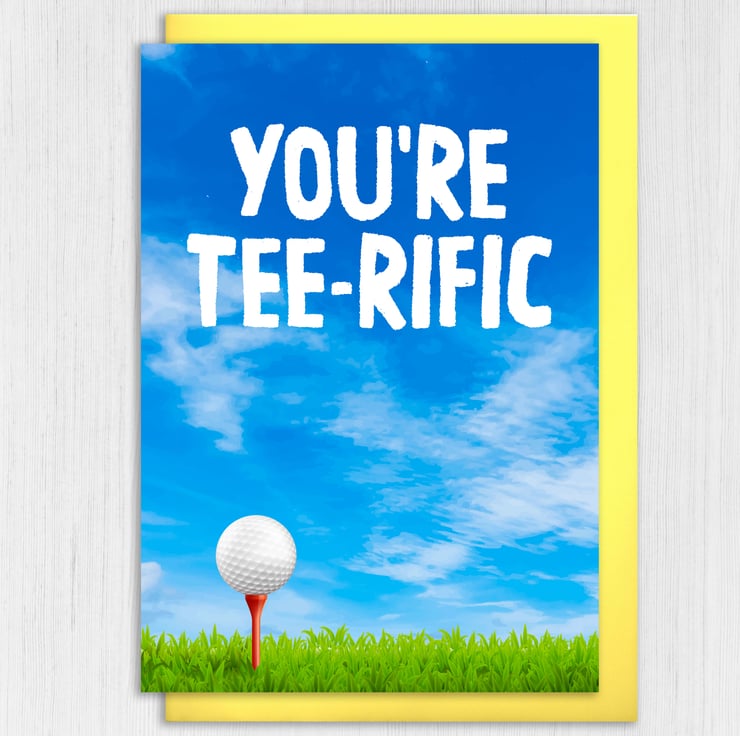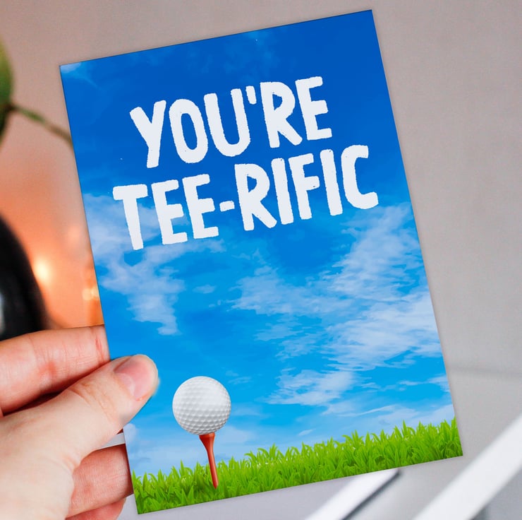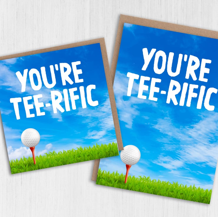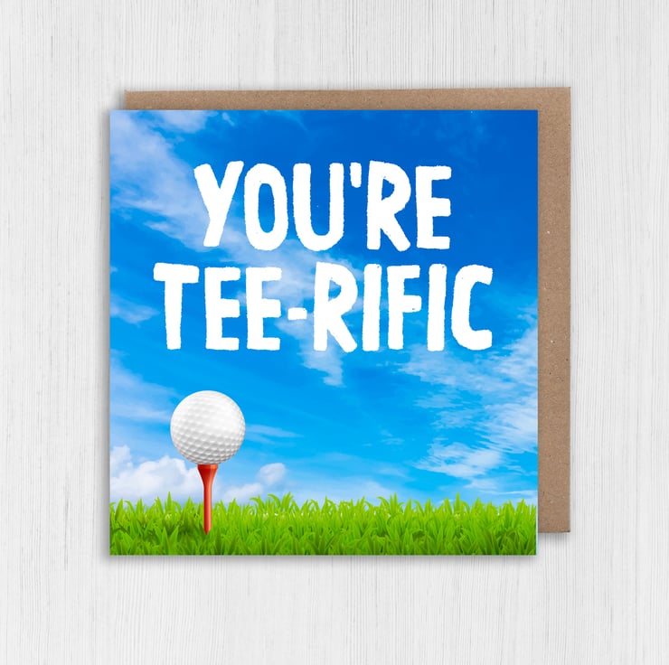 Golfer, golfing, golf pun, birthday card: You're terrific (Size A6/A5/A4/Square 6x6")