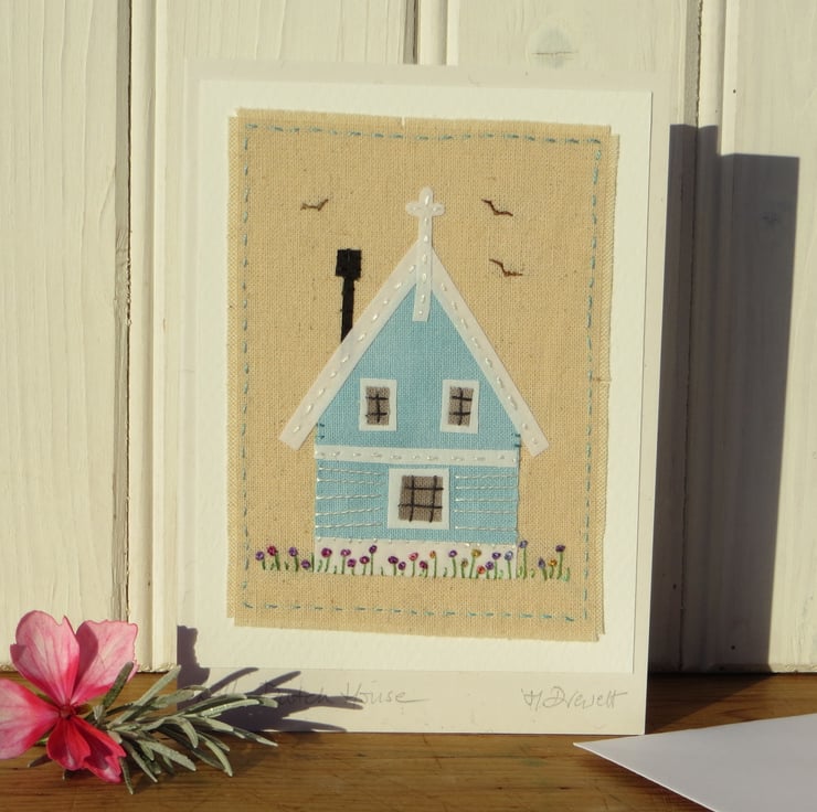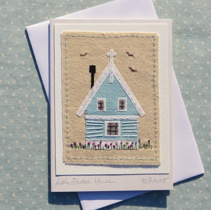 A unique hand-stitched miniature applique Dutch house with embroidered details, including a row of tiny bright colourful flowers. I have used my own (recycled) hand-dyed fabric for the house and windows. There are many intricately hand cut pieces of fabric to make up the design. I love the traditional designs of Dutch houses, and enjoy stitching them. This is a gift as well as a card in which to write your message - a card to keep.