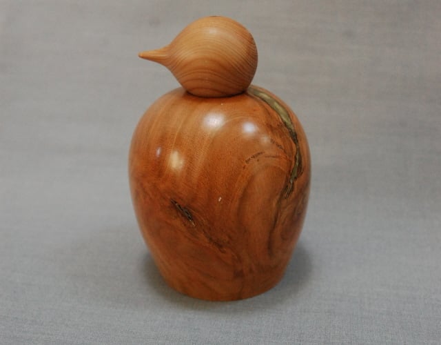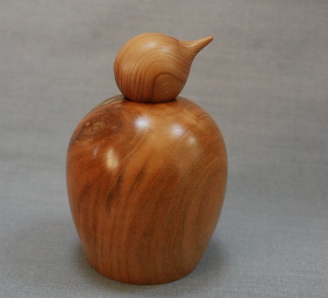 This attractive penguin has been hand made in cherry wood. He is a cut above the rest with a flash of “gold” that emphasises his unique grain. Happy, pensive, alert? Gently pivot his head, and the mood is completely changed. He measures approximately 8.5 cm high and 5.5 cm in diameter.