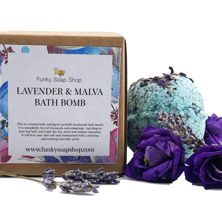 This is a wonderfully indulgent carefully handmade bath bomb. It is completely free of chemicals and colourings. Just drop in your hot bath and enjoy the fizz, scent and instant relaxation. It will leave your skin soft and moisturized with a relaxing and calming Lavender scent.