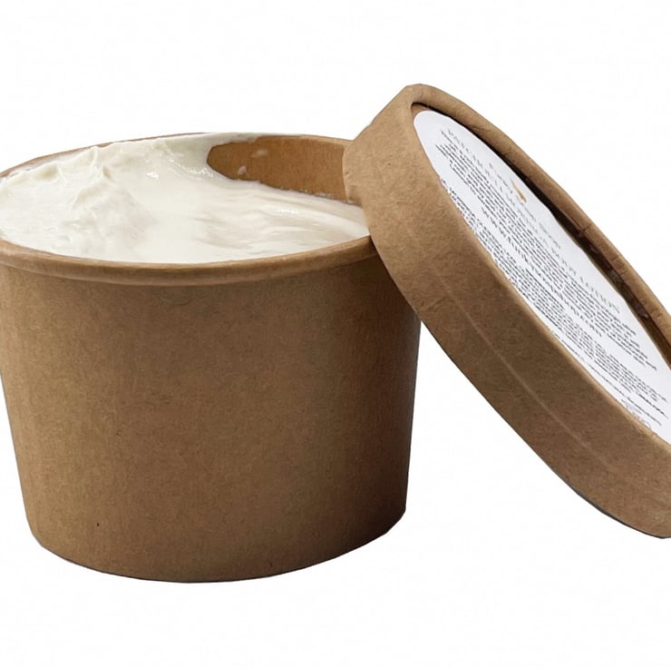 The kraft paper tubs are part of the biodore range of products which are compostable complying with en13432 and are fsc certified products. This means the paper originates from sustainable managed forests. Made from plants , not plastic.