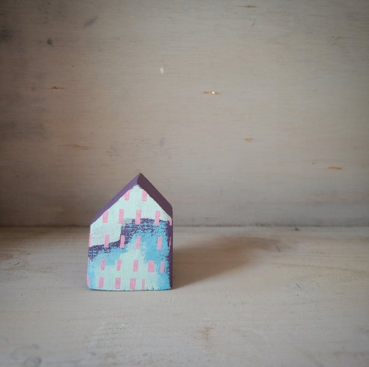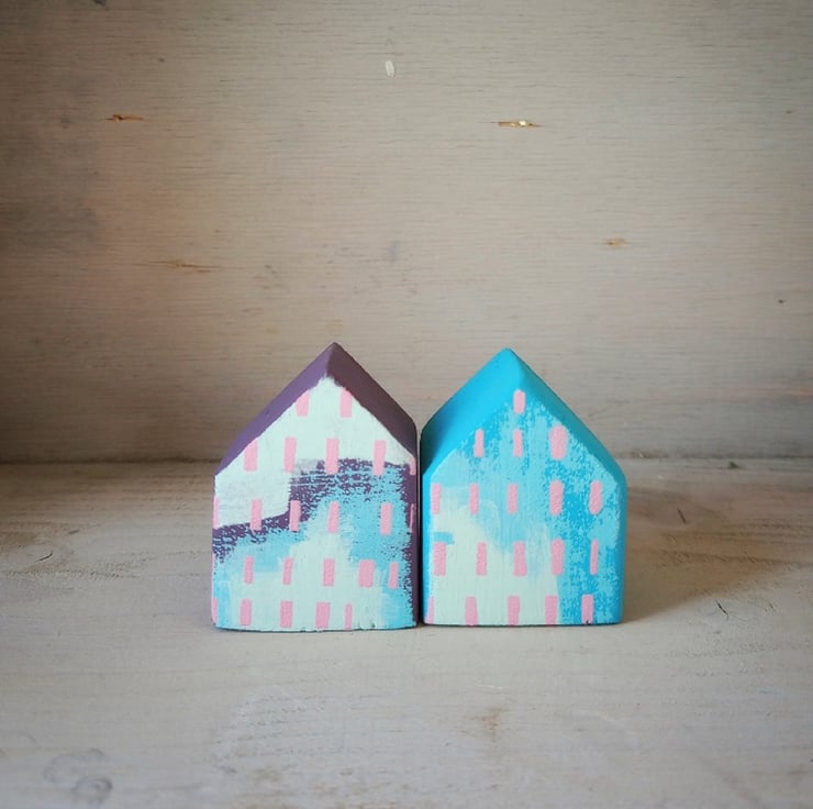 I moved to the countryside in 2019 and had been building up a stash of wood offcuts from other projects, intending to use them for firewood for the coming winter; realising that a lot of this wood was high quality pine which was too good to burn, I came up with the idea of using it to make little houses (a shape which is relatively easy to cut with limited woodworking skills/equipment). As it turns out, little houses are not only en vogue but they are the perfect canvas for experimenting with colour and pattern!
