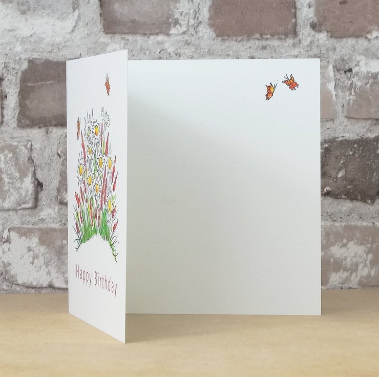 This Daisy Garden Happy Birthday card has been printed using 100% recycled felt white finish 270g card. These cards have lovely textured finish.