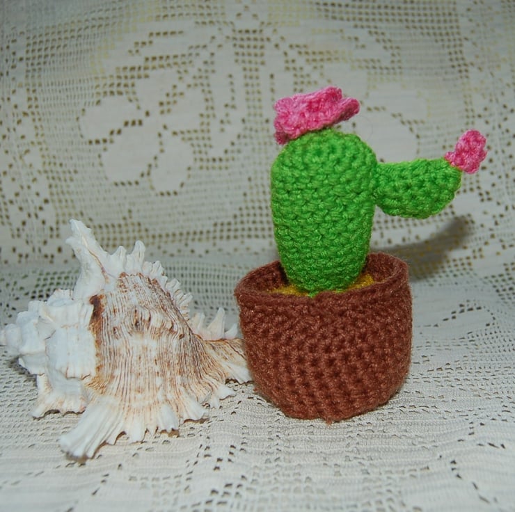 I have crocheted the cactus and pot from colourful yarn. I've embroidered a smiley face on the pot.