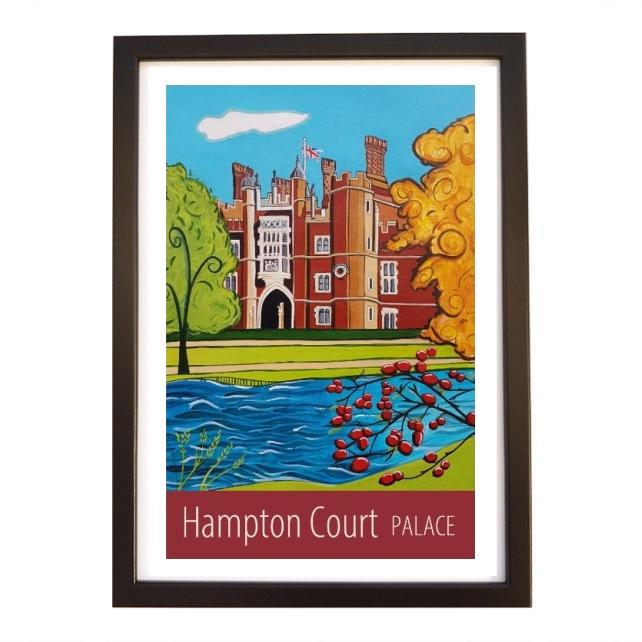 A contemporary travel poster style print of the view across the Thames to Hampton Court Palace, from my own original acrylic painting.