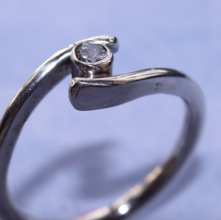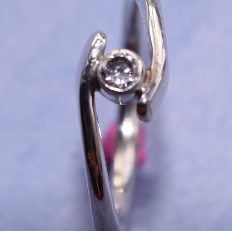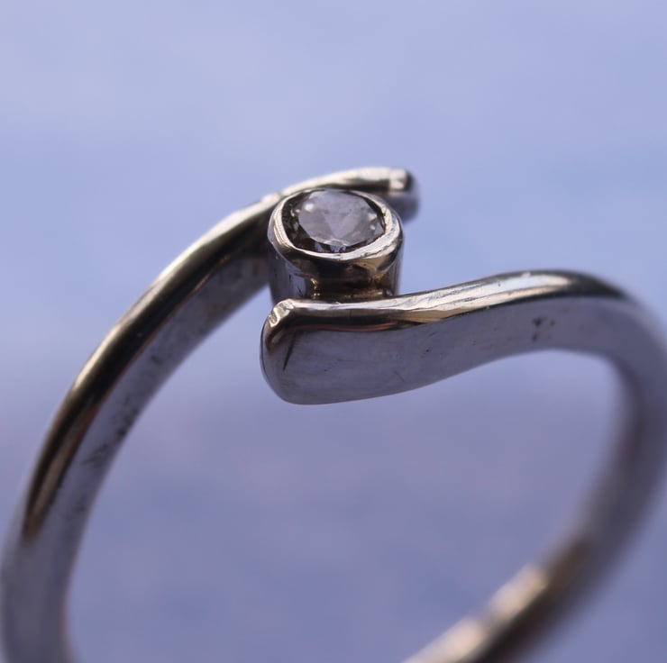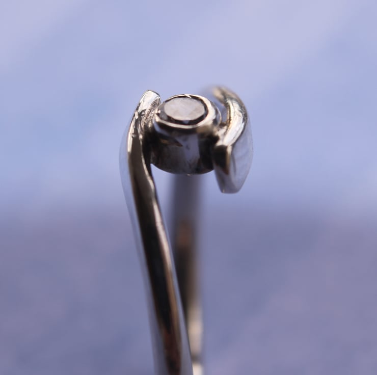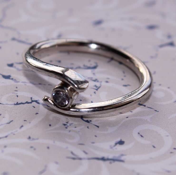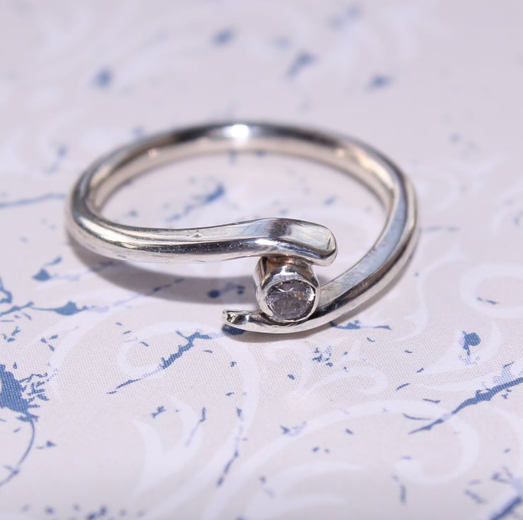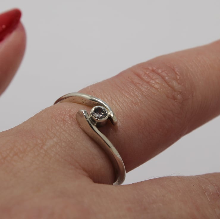 Sterling Silver Ring with a clear CZ jewel, set in a ring shank which surrounds the tube set gem. A very unique and stylish way to show off a single gemstone.