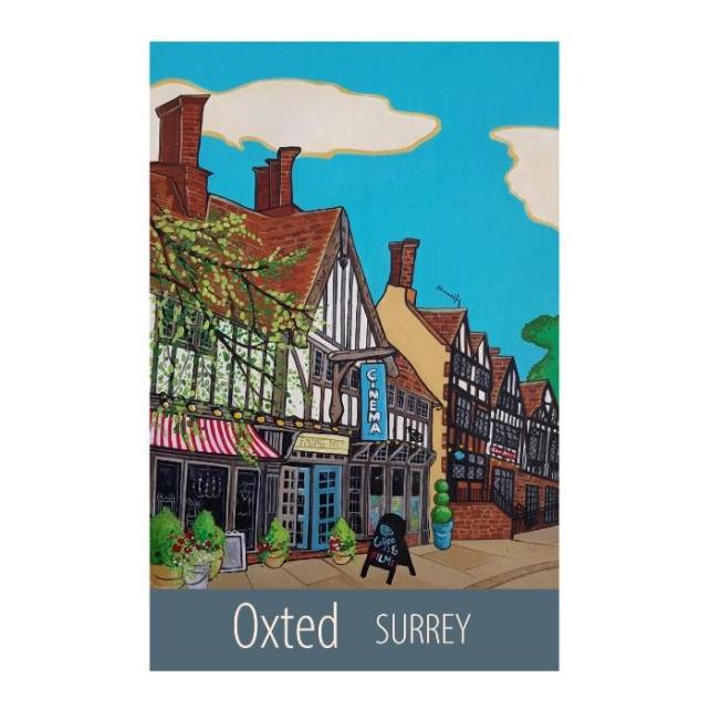 A beautiful print of Oxted, Surrey, including the fabulous Everyman cinema, from my own original acrylic painting.