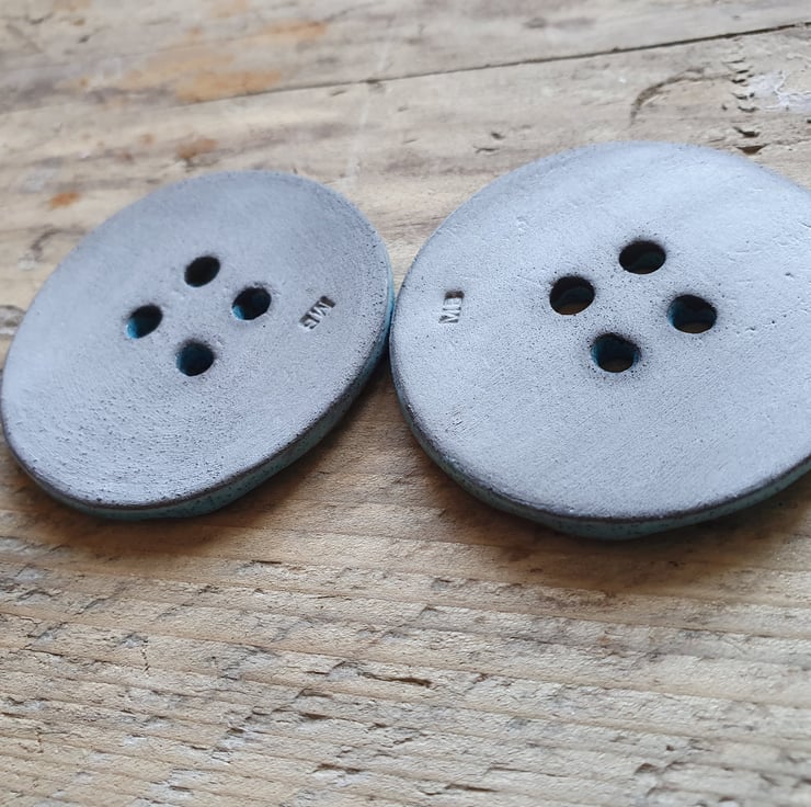 Large Heavy buttons measuring approximately 5 cm across with a depth of between 3 and 5mm.