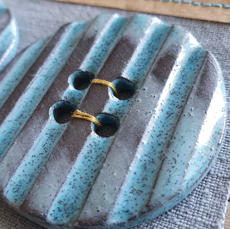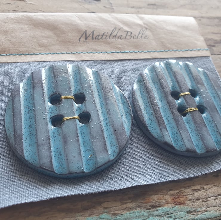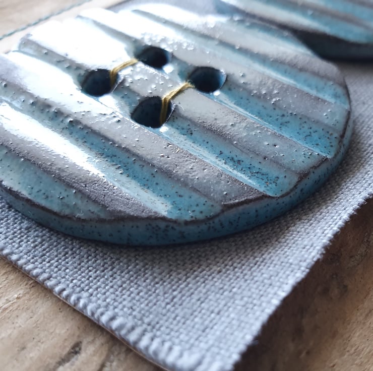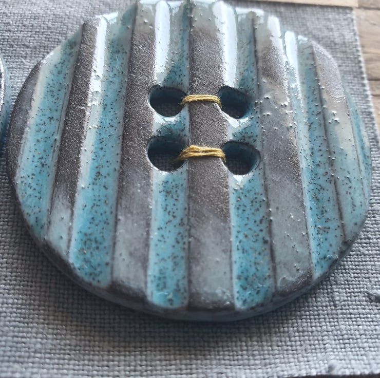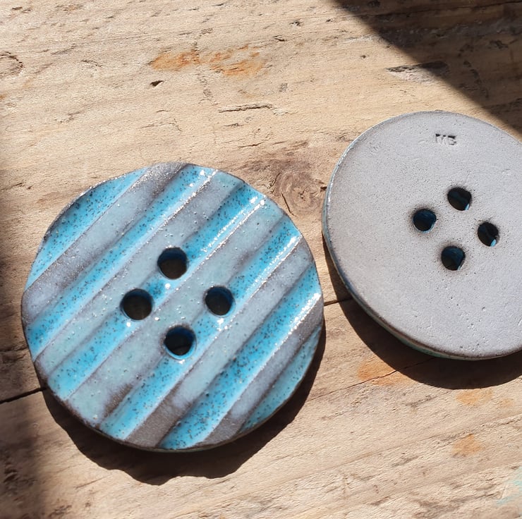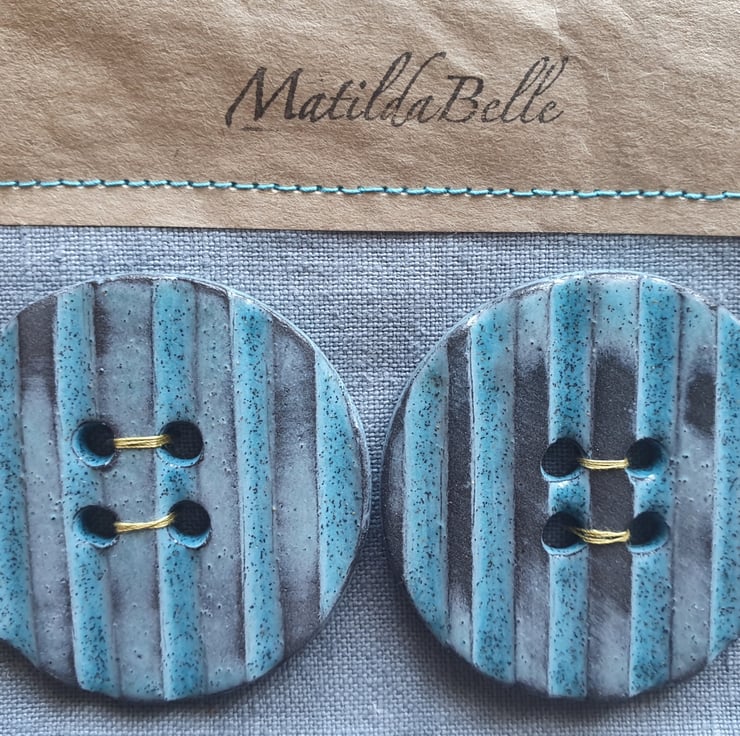 Set of two stunning Black Ceramic Stoneware Buttons glazed in Speckled electric Blue, left unglazed on the rear where the MatildaBelle makers mark can be found.