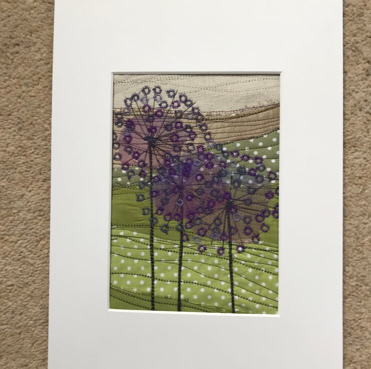 Textile picture , linen, silk and cotton ,with machine embroidery.