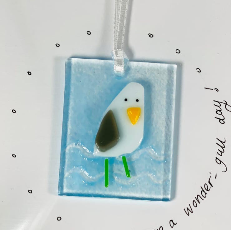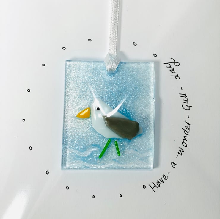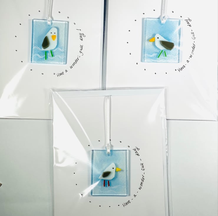 A fused glass keepsake card, a card and a cute detachable hanging glass decoration . A gift and a card in one !