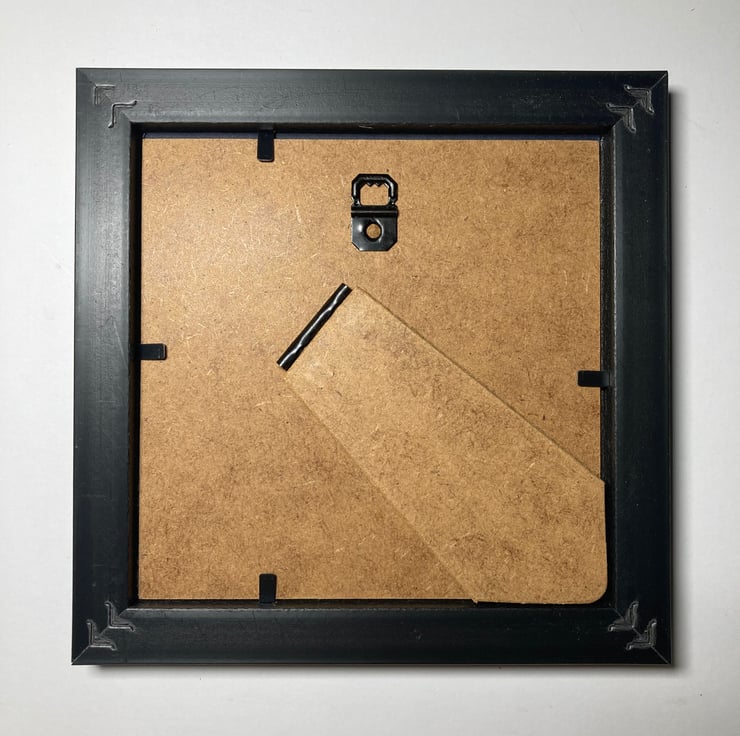 The resulting artwork is rich in texture. The felt art measures approximately 9cm x 9cm (3.5" x 3.5") and it has been mounted on white card in a square black frame. The frame is unglazed allowing the texture of the piece to be clearly visible.