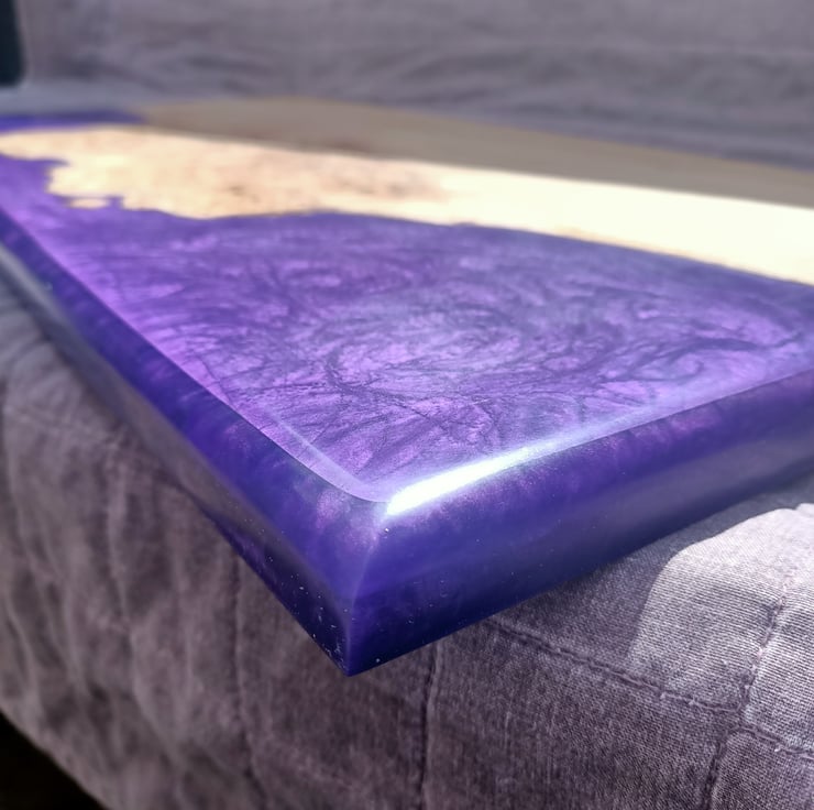 This order is for 1 x Wooden table decoration with purple resin with a total cost of £110.