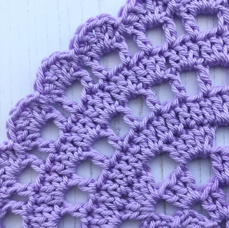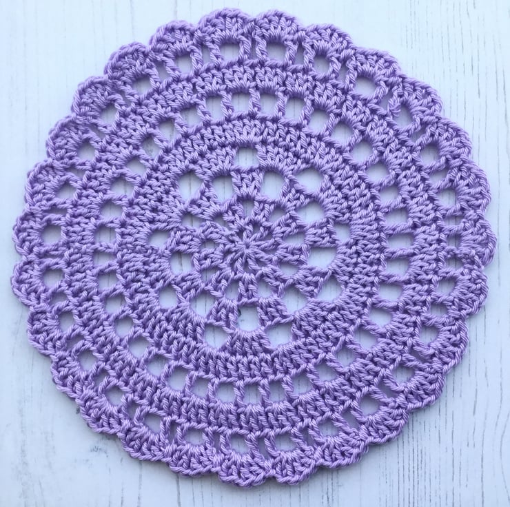 I have crocheted this pretty table mat using a 100% cotton yarn in a lovely shade of lilac.