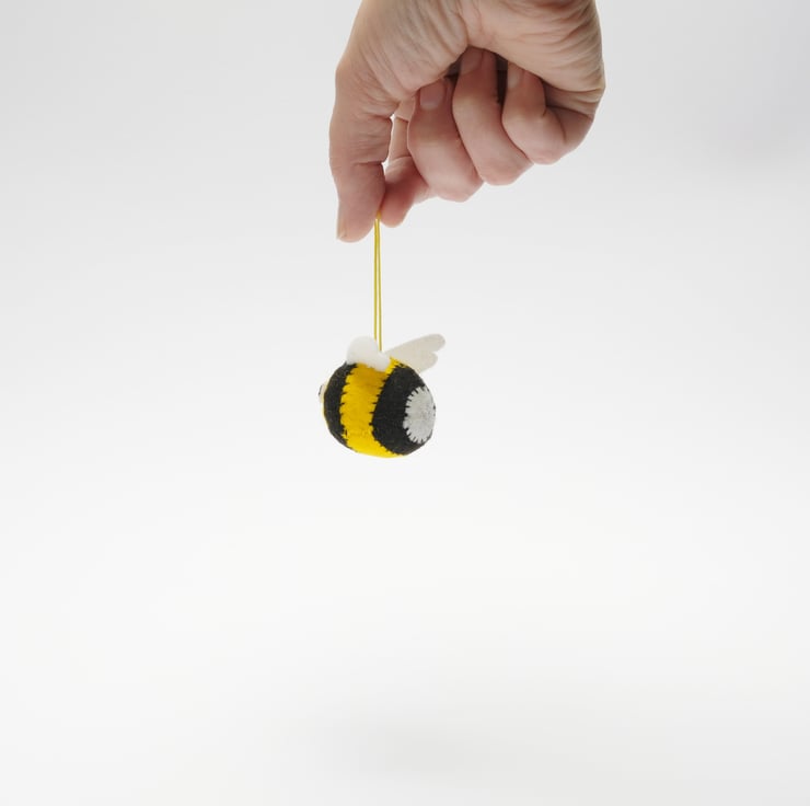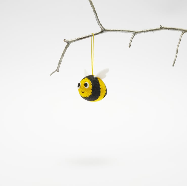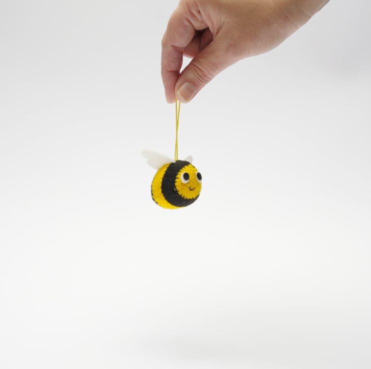 This super cute, bee hanging decoration is an adorable addition to your tree, door handle, hook, desk space, or anywhere you would like to see it’s cute little face. If you can bear to give it away, it would make a perfect small gift! This yellow and black sweetie hangs from a yellow cord, hanging loop.