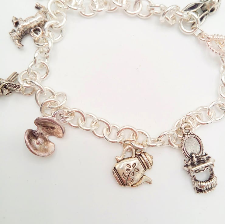 Fairy Tales Silver Plated Charm Bracelet with 9 Charms on a Silver Plated Chain, Charm Bracelet, Ladies Bracelet, Chain and Charm Bracelet, Birthday Gift, Gift for Her