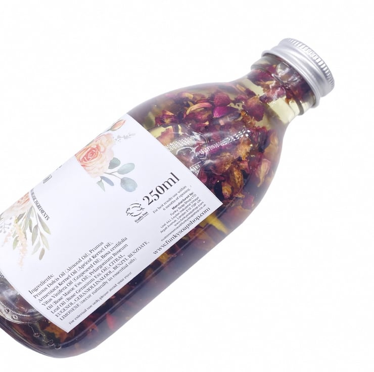 A lightweight, silky smooth, delicately rose infused body oil fragranced with Rose Maroc and Egyptian Geranium Essential Oil. It intensely hydrates, replenishes and nurtures the skin as well as the senses. It's formulated with a beautiful blend of Almond, Grapeseed and Apricot Kernel, which are rich in essential fatty acids to help nourish, hydrate and soften the skin. Highly moisturising these oils help protect the skin from moisture loss while massaging your body. This Massage oil can be used all over the body and great to nourish your cuticles, hands and feet.