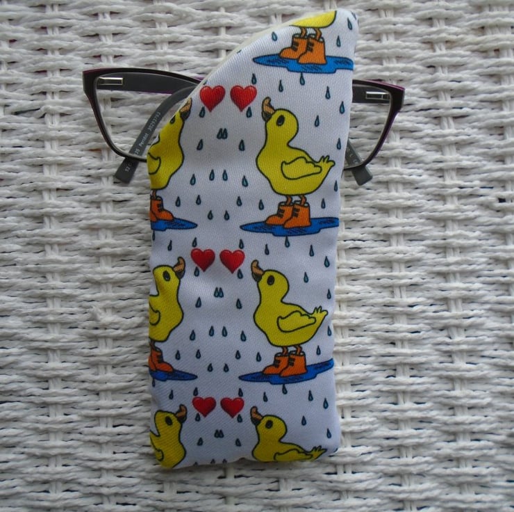Unique handmade double sided lined and padded glasses case approximate size 17 cm x 7 cm suitable for regular size glasses or ready readers. Glasses not included!