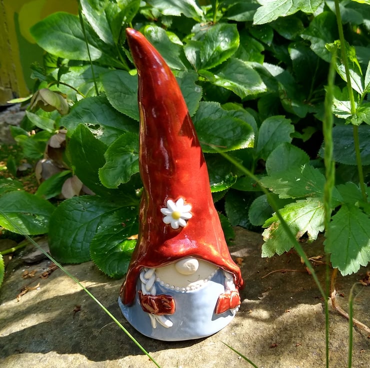 A Scandinavian nisse or tomtenisse gnome standing 19cm tall. This little lady will be equally happy sitting on your shelf, under your Christmas tree, or even out in the garden in the summer.