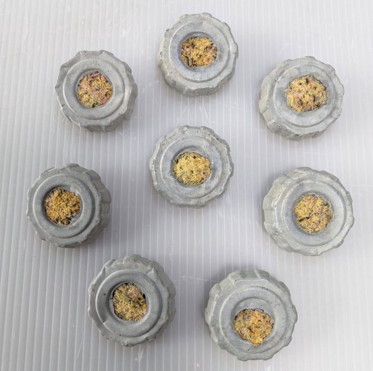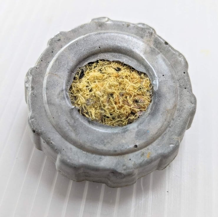 Mustard Yellow Cog Textile and Concrete Mixed Media 50mm Round Brooches