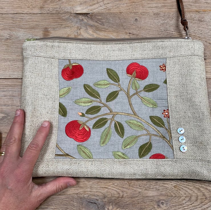 This large pouch is big enough for a tablet or paperback when travelling or for organising bits to transfer between handbags. Great for valuables in a suitcase or as a small project bag.